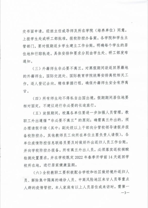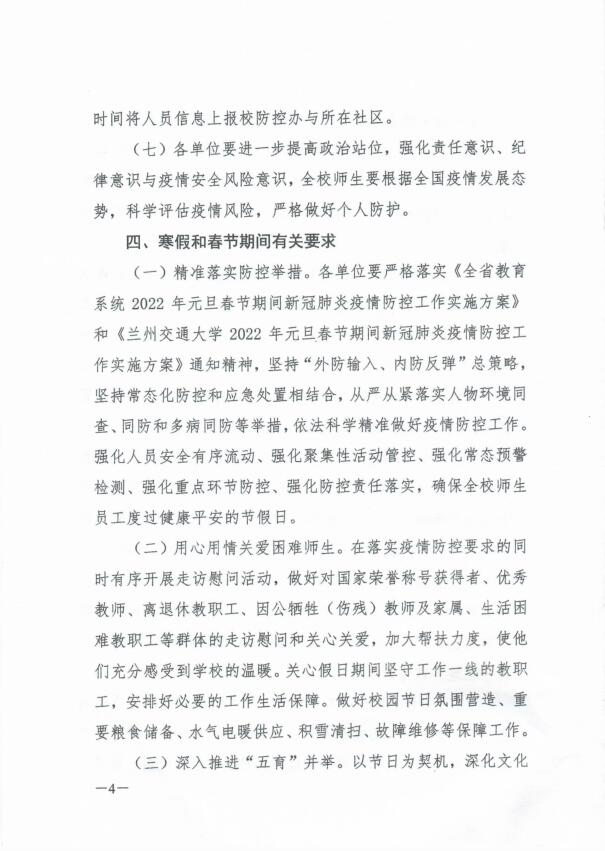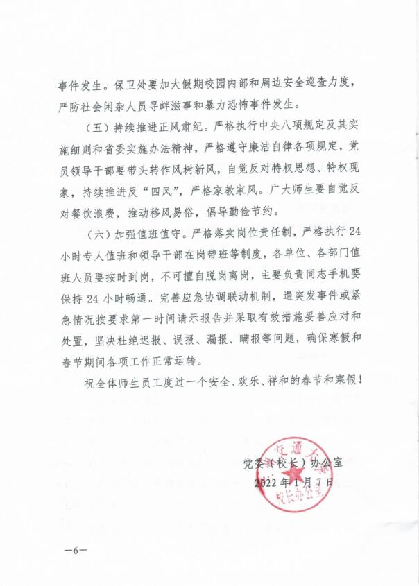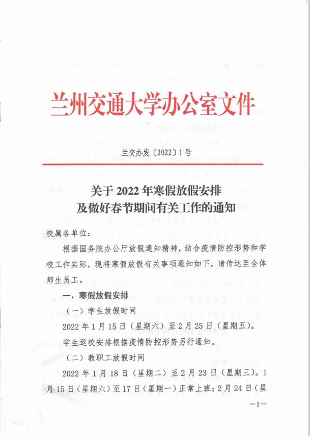 关于2022年寒假放假安排及做好春节期间有关工作的通知