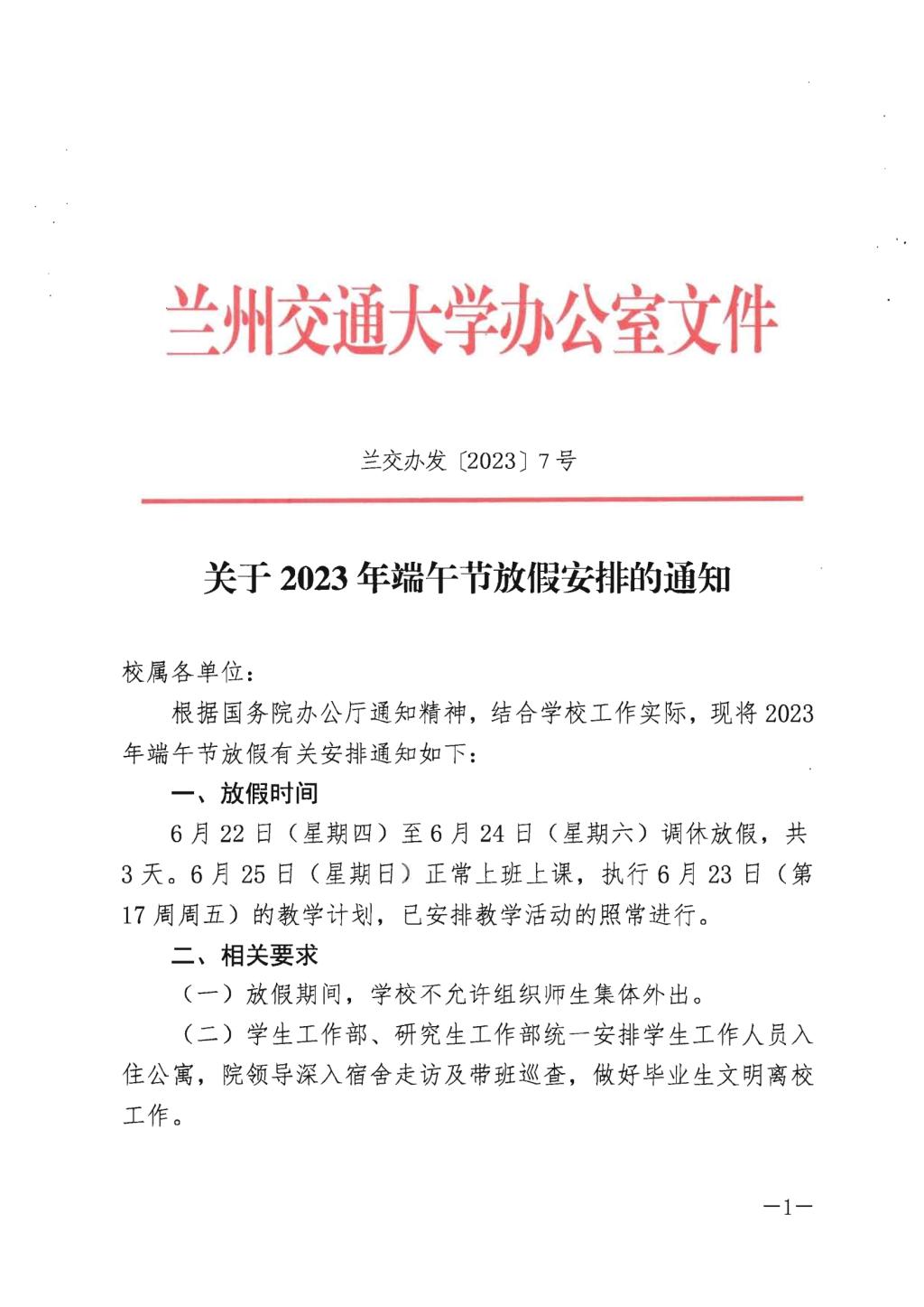 关于2023年端午节放假安排的通知