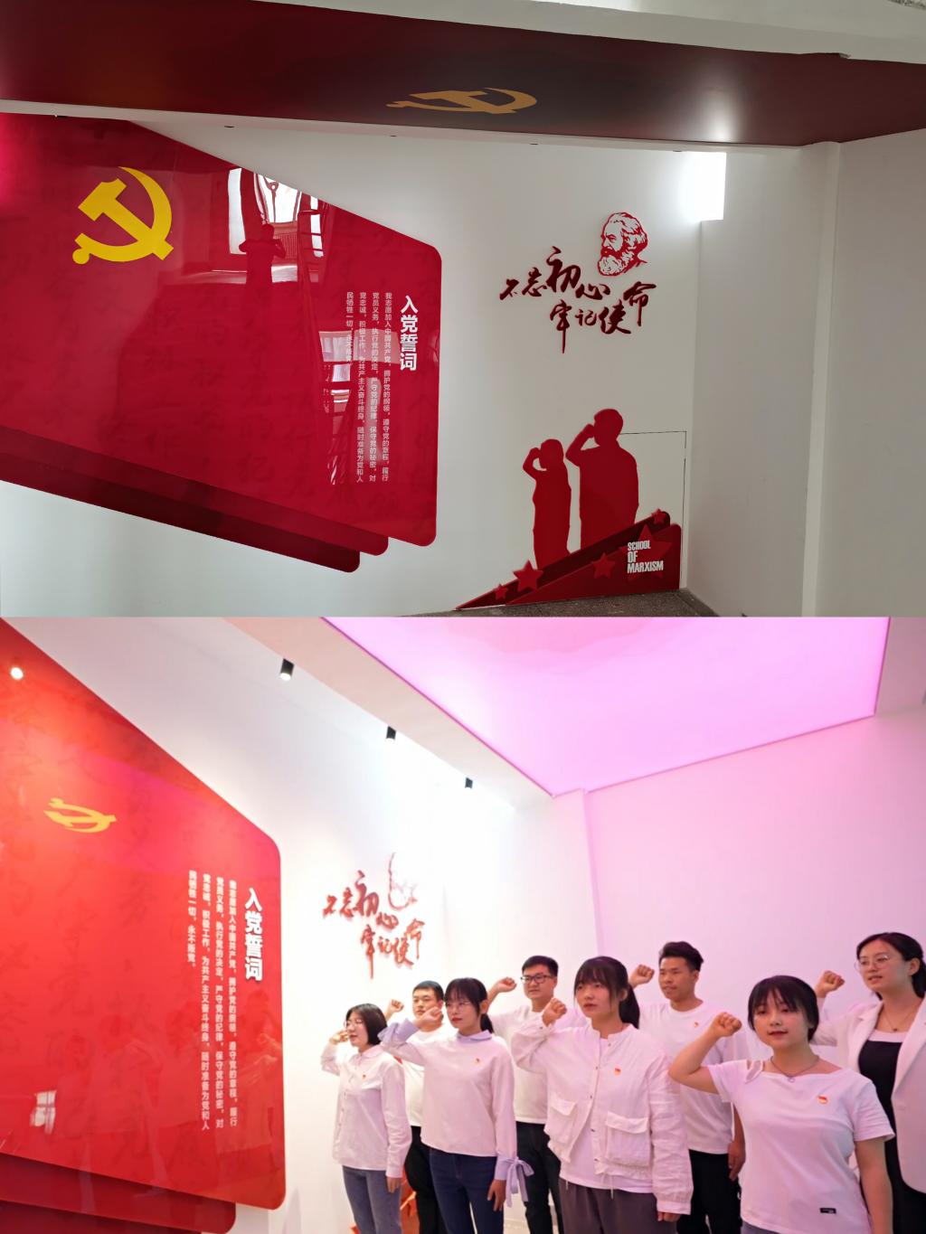 (一)入党宣誓和重温入党誓词。“大中小学思政课实践教育基地”开辟了“党员宣誓墙”,营造了庄重的宣誓氛围,面向参与活动的党员开展入党宣誓和重温入党誓词活动。入党宣誓时,党旗代表党,誓词概括了党对党员的政治要求,预备党员通过入党宣誓,宣示了本人的政治信仰,做出了对组织的政治承诺。重读入党誓词意义在于重温入党初心,促使党员牢记誓言、恪守承诺,起到砥砺初心、唤醒承诺的教育效果。