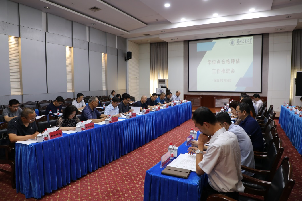 会上,发展规划与学科建设处负责人结合学校学位点现状和评估工作要求,就我校学位点合格评估工作进行安排布置,进一步明确学位点合格评估是国家学位授权审核制度和研究生培养管理制度的重要组成部分,是以研究生培养和学位授予质量为重点,对学位点建设质量的全面“体检”,对提升研究生教育质量、促进研究生教育内涵发展具有重要意义。