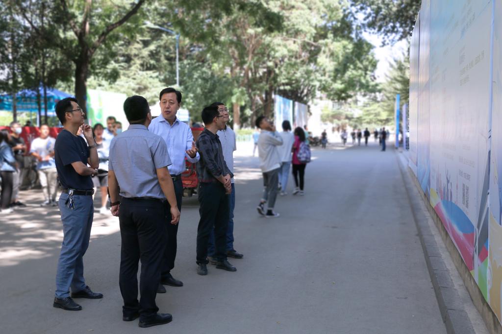 会后,马军党在招生就业处负责人的陪同下参观了五教萃英厅及五教楼下的企业宣传展板区。