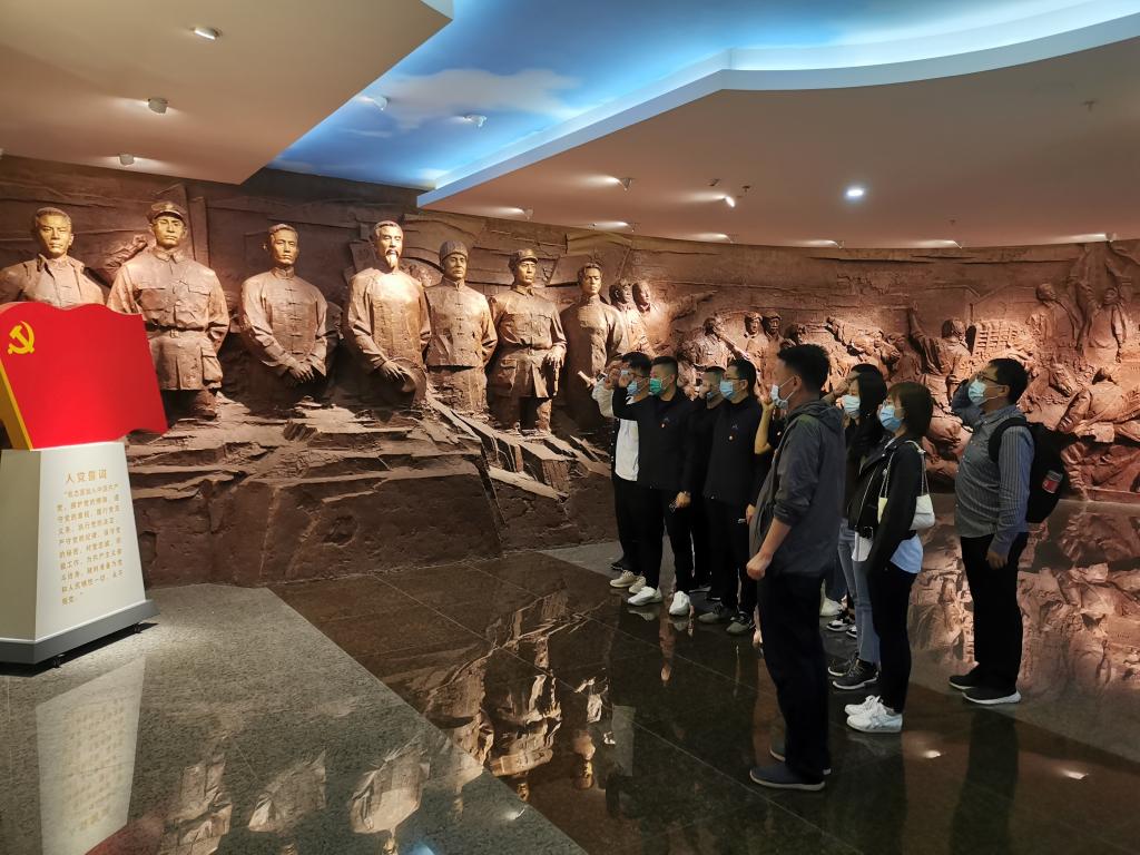 初入纪念馆,全体党员站在庄严的入党誓词墙前,面向党旗、高举右拳、神情庄重、声音铿锵,重温入党誓词、重忆入党初心。通过宣誓仪式,全体党员深深感受到党员的责任、使命、荣耀,时刻提醒自己所肩负的神圣使命和责任,不断强化对共产主义事业的不懈追求。
