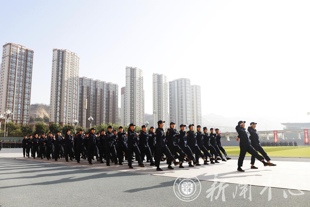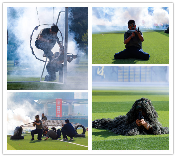 军事训练成果汇报表演中,新生学员先后进行了女子啦啦操、男子军体拳、拳棍匕首操、战术展示等表演。啦啦操表演,巾帼不让须眉,动作规范,整齐划一,掌声不断。同学们统一节奏听号令,训练有素齐动身,通过阵型变换展示出变化多样的数字效果和文字图样,摆出“中国共产党万岁”“100”的字样,向中国共产党成立100周年献礼;军体拳虎虎生威,血气方刚,一招一式干净利落;刺杀操干净利落,长棍术气势如虹;战术展示表演中,灵敏的侦查、精准的信息传递、利落有效的火力打击、灵活的队形变换、一招制敌的近身格斗赢得现场阵阵掌声。执训教官带来军人队列动作展示,英姿飒爽,整齐划一,展示出军人服从命令、听从指挥的优良作风。