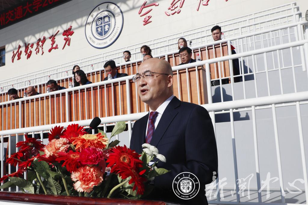 他讲到,63年来,兰州交大始终与祖国同频共振,保持着“为国育才”的鲜明底色,服务国家、服务轨道交通、服务地方经济发展,在建设特色鲜明的高水平教学研究型大学征程中奋勇向前,发展成一所享誉国内、在西北地区轨道交通建设中具有不可替代性的高等院校,为国家交通事业和地方经济发展培养20余万名优秀人才。形成了“严谨治学、严格要求”的办学传统、“奋发向上、艰苦朴素、刻苦钻研、严谨治学”的校风、“尚德、励志、博学、笃行”的校训,践行爱国爱路、自强不息的“天佑”精神,成为中国国家铁路集团有限公司与省政府、国家铁路局与省政府“双共建”高校。