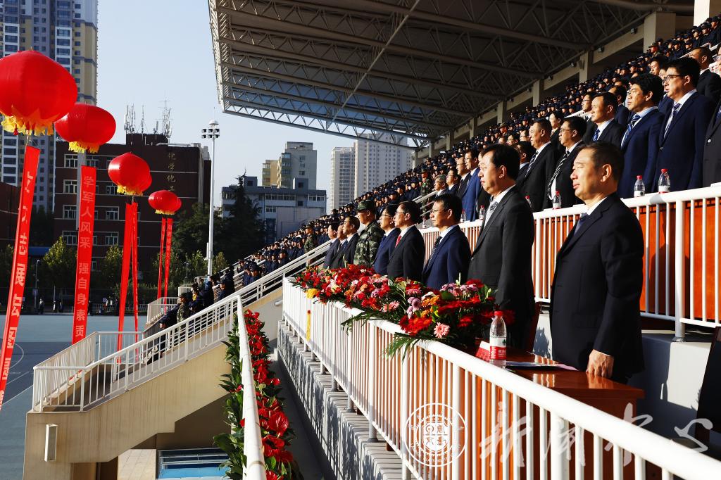 校领导杨子江、李引珍、陈兴冲、买寿清、马军党、高云庆、党建武、朱廷珺,武警甘肃总队某支队支队长高春明上校等出席典礼。有关职能部处、各学院负责人、全体2021级本科生、高职生以及研究生代表、留学生代表参加典礼。典礼由副校长马军党主持。