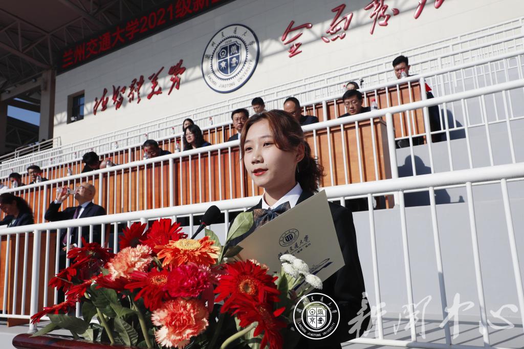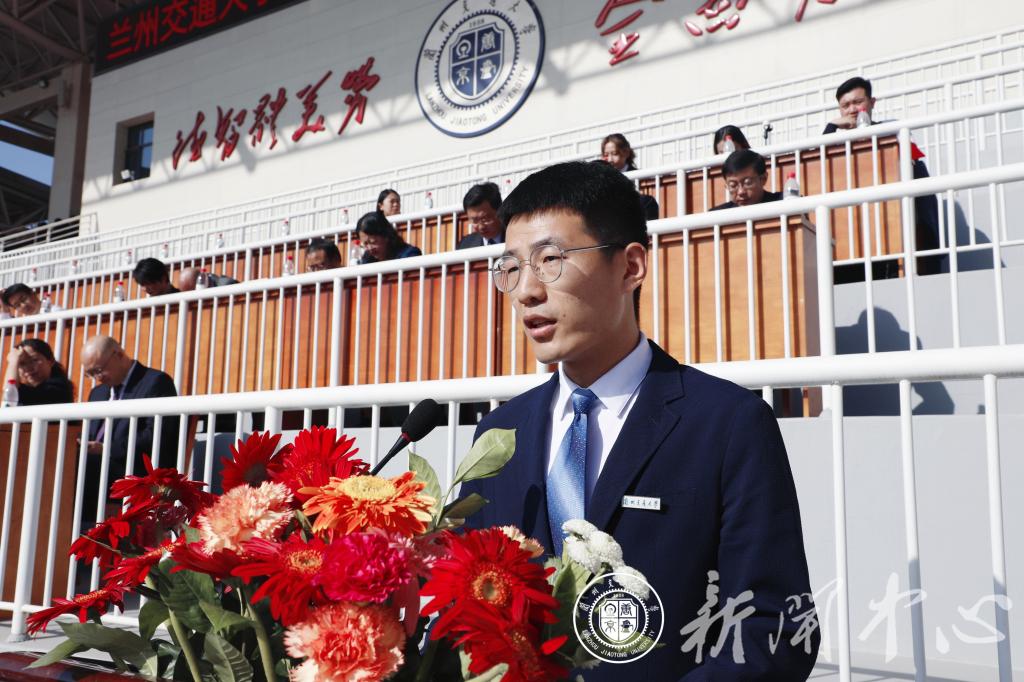 新生代表,机电工程学院马蔚分享了自己初为兰州交大人的光荣和振奋,并号召全体新生在学业上勤勤恳恳,一丝不苟;在学生工作中勇于创新,超越自我;在校外实践中不断探索、积累经验。用行动诠释青春的内涵,以青春之笔,书写清澈挚爱;以心中红星,献礼盛世中华。