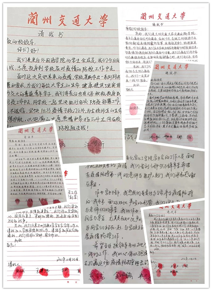 “哪里需要我,我就到哪里去。”广大青年用一张张请战书、一个个红手印为抗击疫情筑起坚强防线。肩头扛起担当,奔赴抗疫一线,投身到抗击疫情志愿服务当中,以实际行动勇担交大青年人的责任与担当。