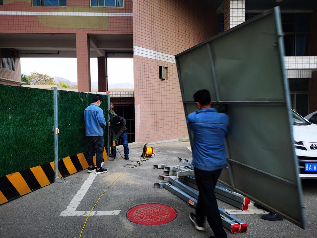 疫情防控按要求。后勤保障部动力中心根据学校疫情防控要求及配合学生公寓管理,临时关闭了学生浴室,延长了开水供应时间。所有工作人员参与浴室、开水房、电梯的消杀工作并记录在案。各锅炉房规范人员进出,登记信息并测量体温。为更好地落实学校疫情防控工作要求,坚决做到家属区、校园前区、北校区隔离,水电维修中心工人与时间赛跑,连夜加班加点在家属区、校园前区、北校区加装了隔离板进行物理隔离。