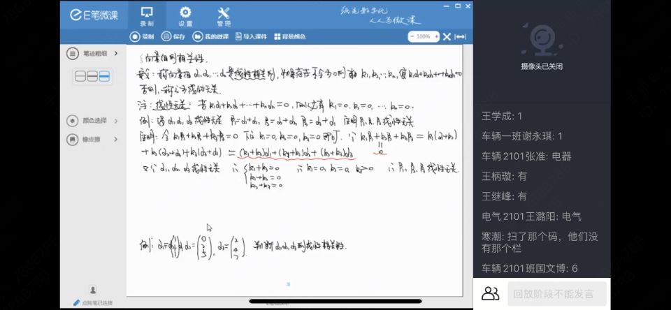 分析学科特性、设计特色教学方法,提升线上教学效果。数理学院因“课”制宜,基于数理学科逻辑性强、抽象性强、推导要求高等特性,开展了独具特色的教学活动,任课老师采用课件结合手写板推演的直播教学方式,生动直观地进行重、难点知识讲解,切实提升学生线上学习效果。