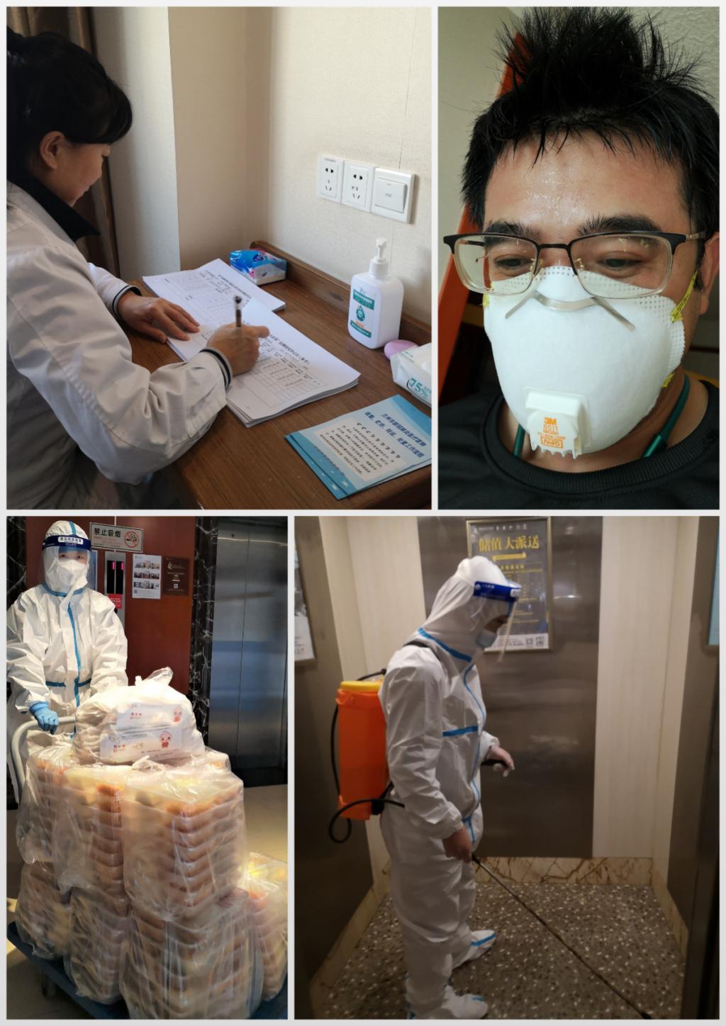 管护人员还要对八个学生楼层和工作区每天进行四次的全面消杀,尽量不留死角。要定期配送卫生纸、一次性拖鞋、洗漱用品以及其他生活必需品。需要每日记录两次体温监测情况,学生每日异常开门情况,三次核酸检测情况,并建立好相关纸质台账。同时也要应急处理学生停电、马桶堵塞等特殊情况。全体管护人员24小时保持电话畅通,做到对健康观测学生的全方位监控、管理和服务,解决协调学生的各种困难。