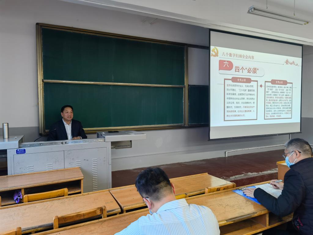 为全面贯彻省教育厅及学校党委关于组织开展党的十九届六中全会精神集中宣讲工作的部署,12月6日校党委常委、副校长朱廷珺为铁道技术学院师生党员作了题为“深刻领会党的百年奋斗重大成就和历史经验”专题宣讲报告,学院领导班子成员,院属科级干部、各支部书记及学生党员代表聆听了报告。