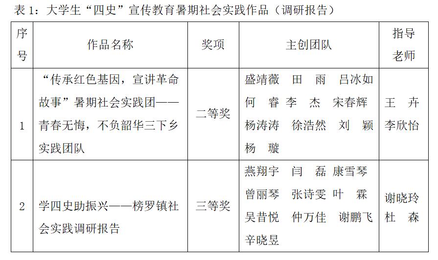 近日,由省委宣传部、省委教育工委、省教育厅联合举办的“庆祝中国共产党成立100周年全省大中小学‘四史’宣传教育作品征集活动”和省委宣传部、省教育厅组织开展的“关于大学生‘四史’宣传教育暑期社会实践作品征集活动”落下帷幕,我校师生积极参与,并取得佳绩,其中荣获一等奖1项,二等奖2项,三等奖3项。
