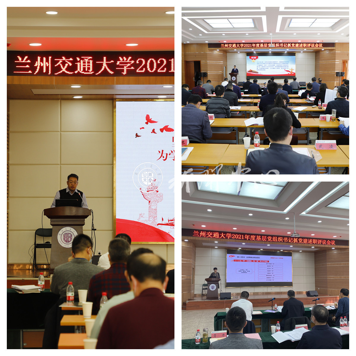 会上,继续教育学院党总支等10家基层党组织书记分别从主要做法、党建特色、存在的问题和整改措施等四个方面,就本单位基层党建工作开展情况做了现场述职。党委书记杨子江逐一进行了点评,在肯定各单位党建工作成绩的同时,指出了不足和今后努力的方向。根据现场述职和书面述职情况,与会的党委委员分别对30个基层党组织党建工作进行了测评打分。