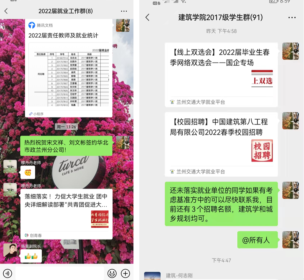 网聚毕业生,云端促就业在疫情防控期间,持续推进2022届毕业生就业工作。通过云端指导,引导毕业生认清形势、准确定位,重点做好“慢就业、怕就业、不就业”学生做好就业引导工作。全院教师积极向毕业生推荐招聘单位,确保“一人一策”,同时,动员毕业生积极参加“空中双选会”,促进毕业生及时线上签约、顺利就业。