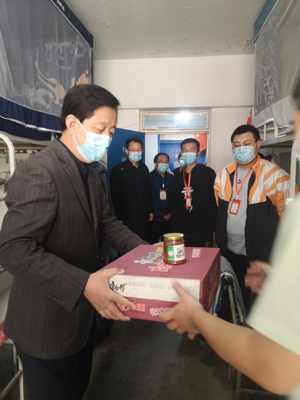 与此同时,学校向桃海公寓、东方公寓各宿舍派发方便面和拌饭酱,为同学们送去关心关爱,这是继3月21日学校为校外学生公寓发放牛奶之后的关爱再出发。