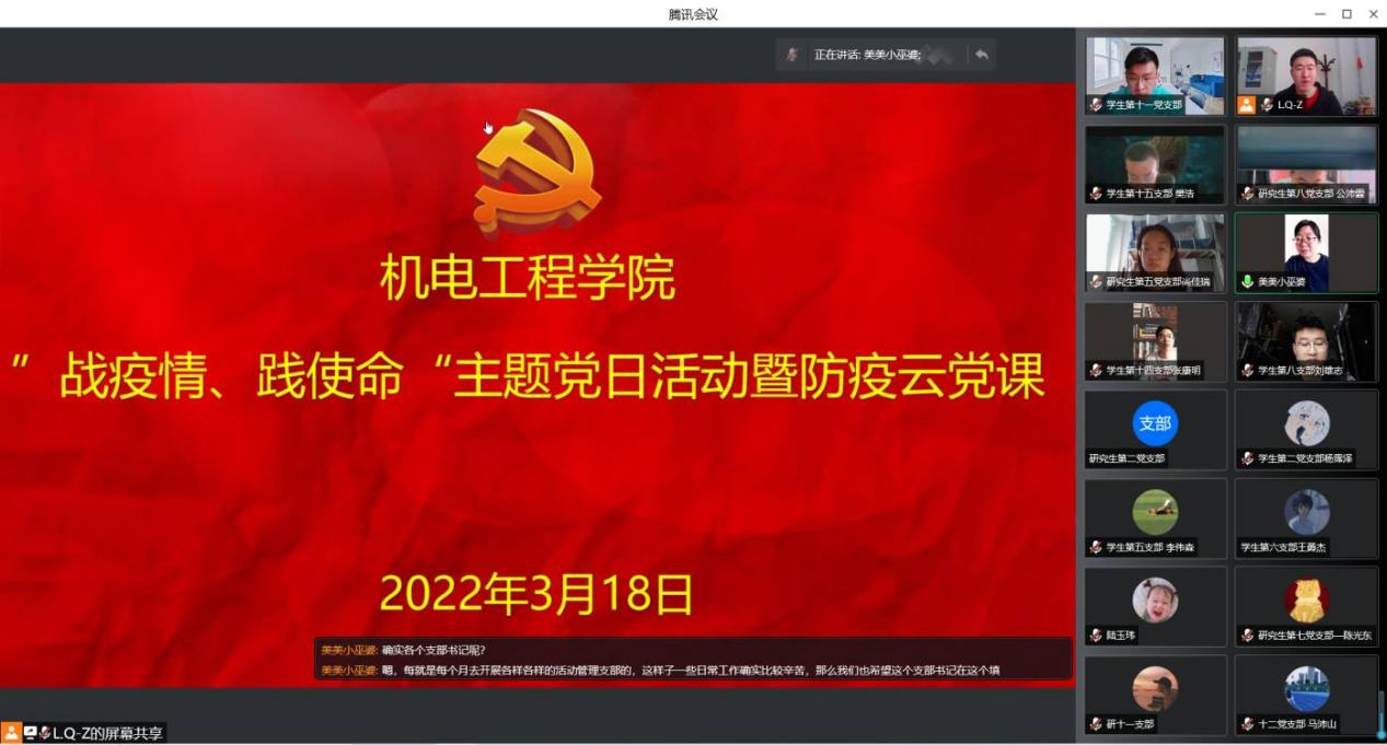 学院党委组织开展了一次特殊的主题党日活动,全体党员通过网络平台参加了“战疫情、践使命”主题党日暨防疫云党课活动,课程形式新颖有趣,内容紧扣当下实际,大家有感而发,是一次很好的精神洗礼,进一步增强了党性修养和社会主义制度自豪感。