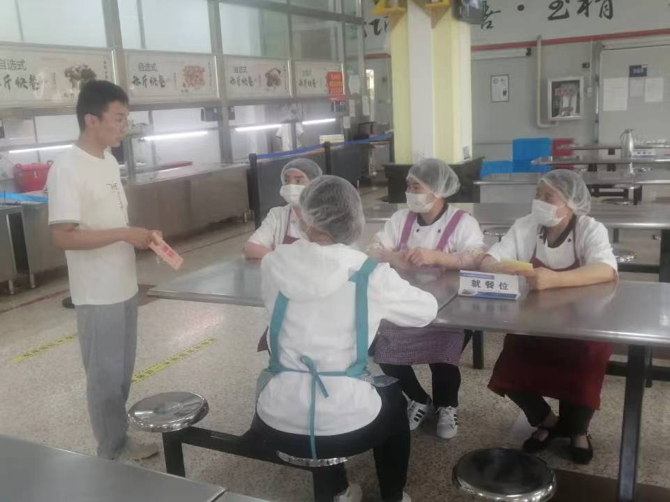 活动现场,通过张贴宣传海报的方式,向食堂就餐人员科普营养知识、合理膳食、科学运动的重要性,提升广大师生的健康意识。同时,邀请营养宣传员向食堂工作人员及厨师详细讲解食品标签的相关知识。学会看标签就可以更好地帮助食堂工作人员了解食品的营养成分和配料组成,科学合理地选择适合学生的食品。