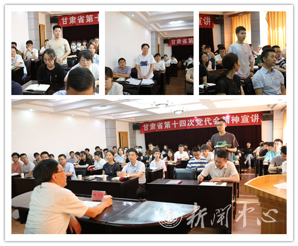 杨子江结合参会经历,介绍了甘肃省第十四次党代会召开的基本情况和取得的各项成果,着重对会议主题、五年来全省取得的历史性进步和成就、未来五年工作总体要求和奋斗目标作了阐释和解读,要求全院上下要把学习贯彻甘肃省第十四次党代会精神作为重要政治任务,准确把握党代会确定的“一核三带”区域发展格局、实施“四强”行动等主要抓手和重点任务,弘扬伟大建党精神,开拓创新,砥砺前行,走好新的赶考之路。