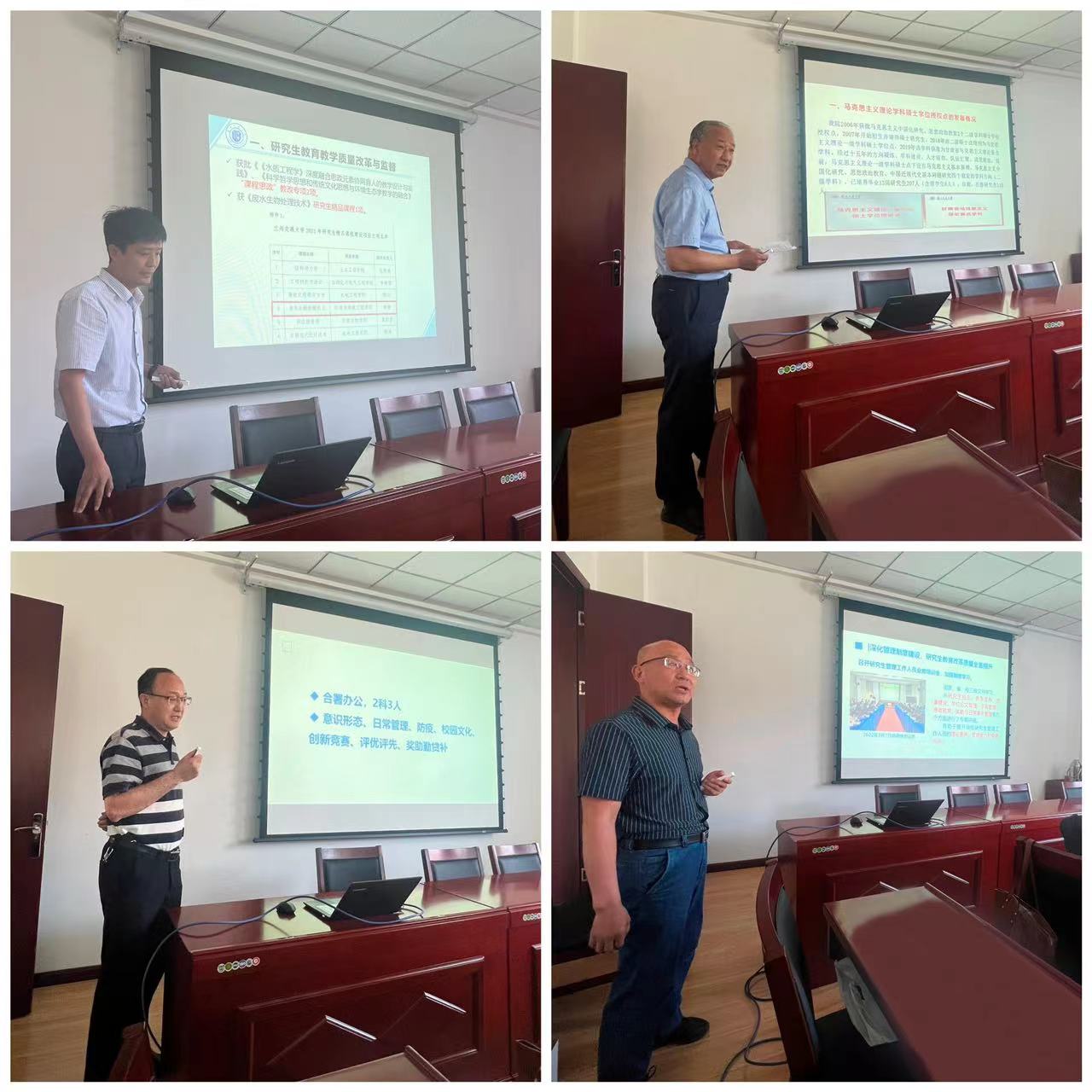党委研究生工作部和研究生院主要负责同志介绍了目前我校研究生教育管理工作现状,同时,要求各培养单位在今后工作中聚焦思想政治教育、导师队伍建设、招生就业提质、育人机制完善、培养质量提升等方面,全面落实全国研究生教育工作会议精神,进一步推动我校新时代研究生教育改革质量提升行动。