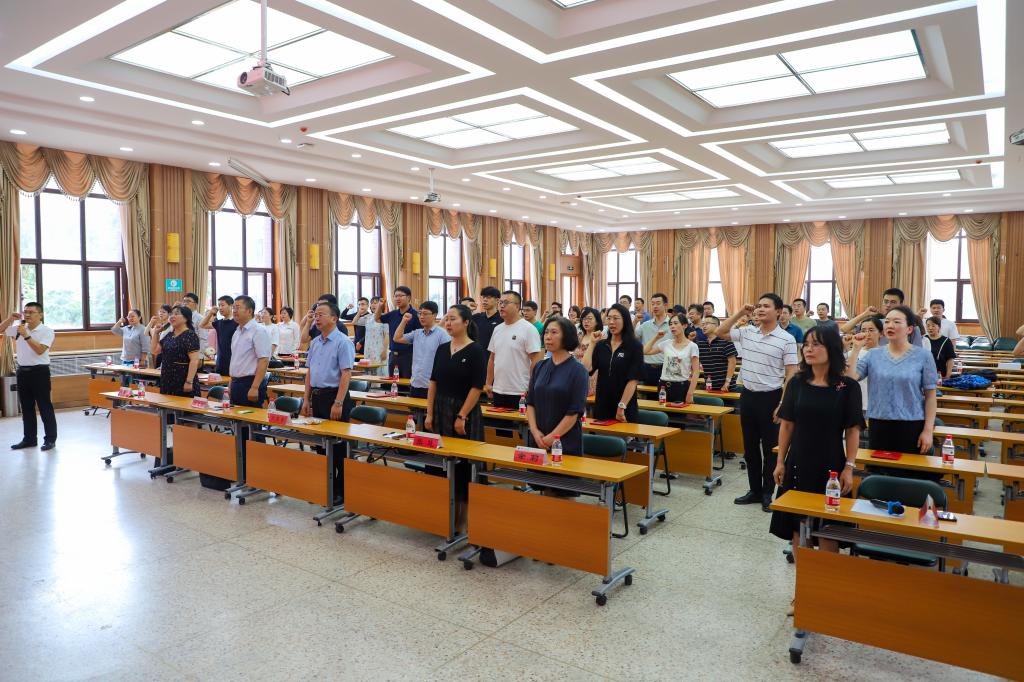 刘振奎为本次结业典礼致辞,他指出,加快教育现代化、建设教育强国、办好人民满意的教育,必须依赖师德高尚、业务精湛的高素质专业化教师,希望全体新入职教师能够学以致用,不断提升业务水平,不断提高教育教学能力,早日成为引领学生“品格、品质、品行”的大先生。学员代表土木学院王力老师作了交流发言。参加结业典礼的全体人员一同观看了教师发展中心专门制作的培训记录短片。刘振奎与出席典礼的相关部门领导和教师代表为本期培训优秀学员颁发了荣誉证书,为全体参训教师颁发了结业证书。最后举行了新入职教师职业誓词宣誓仪式。