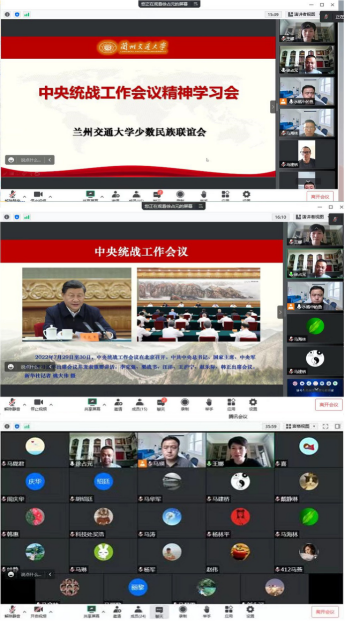 8月31日下午,兰州交通大学少数民族联谊会全体会员线上集体学习中央统战工作会议精神,特别是习近平总书记重要讲话精神。本次集体学习活动由校少数民族联谊会会长王娜同志主持,少数民族联谊会秘书长徐占元同志领学。