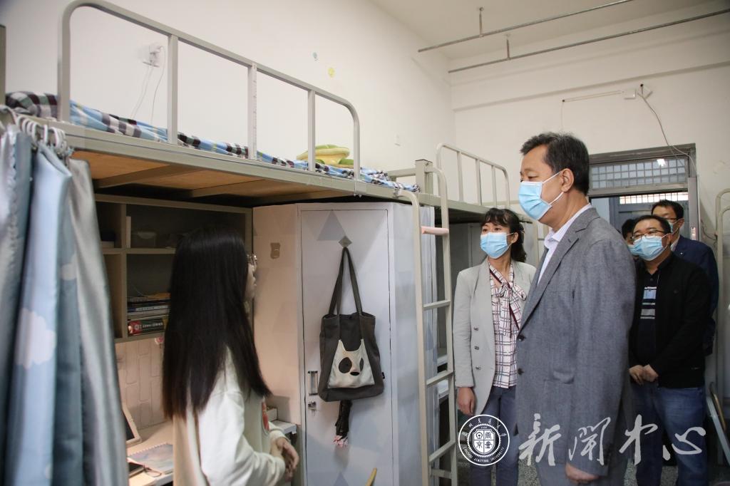 之后,马军党一行查看了校门人员出入信息化管理与学校东门改造工程进展情况;深入学生公寓,慰问了在校学生,询问了他们的学习生活,勉励他们积极调整心态、互助关心,持续做好个人健康管理。