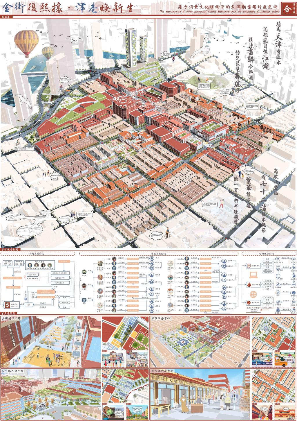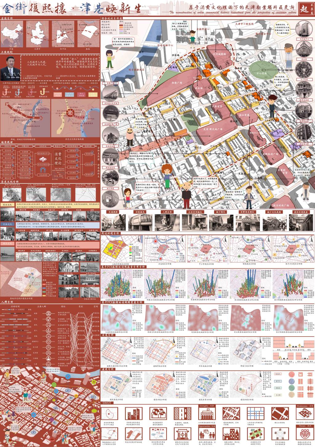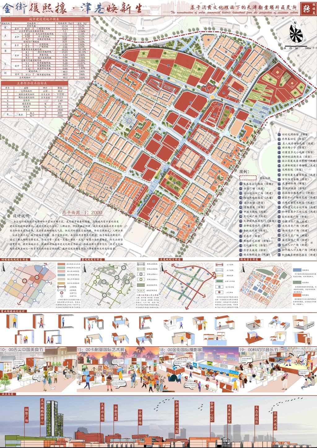 9月23日,第二届全国大学生国土空间规划设计竞赛圆满落幕。我校建筑与城市规划学院2019级城乡规划专业本科生胥德泽、马晓霞、盛婧薇、宋春辉、魏姝坤,在关惠元、朱家聪两位老师指导下,以“金街复熙攘·津巷焕新生——基于消费文化理论下的天津劝业场片区更新”为主题的参赛作品,获得本科组三等奖。