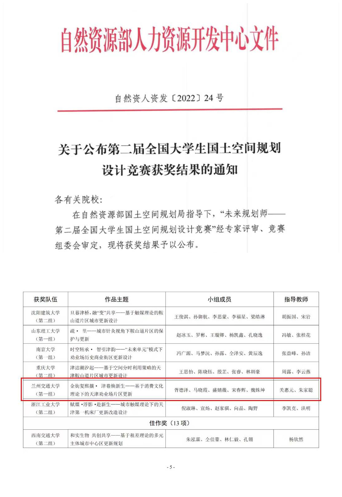 我校师生在第二届“全国大学生国土空间规划设计竞赛”中获得佳绩