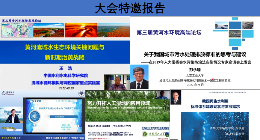 中国工程院院士王浩、彭永臻,清华大学教授胡洪营,爱尔兰都柏林大学教授赵亚乾,兰州交通大学副校长贡力分别为大会作了主旨报告,论坛共设置“黄河流域绿色低碳可持续发展”“区域水环境治理”“村镇非常规水利用和饮用水安全与保障”“城市再生水利用”等9个分论坛,来自中国科学院大学、上海交通大学、哈尔滨工业大学、同济大学、四川大学、美国科罗拉多州立大学、捷克生命科技大学等46所国内外知名高校专家学者,为本次论坛提供了60余场精彩的专题报告,论坛的成功举办为黄河流域生态环境保护和高质量发展建言献策并提供智力支持。