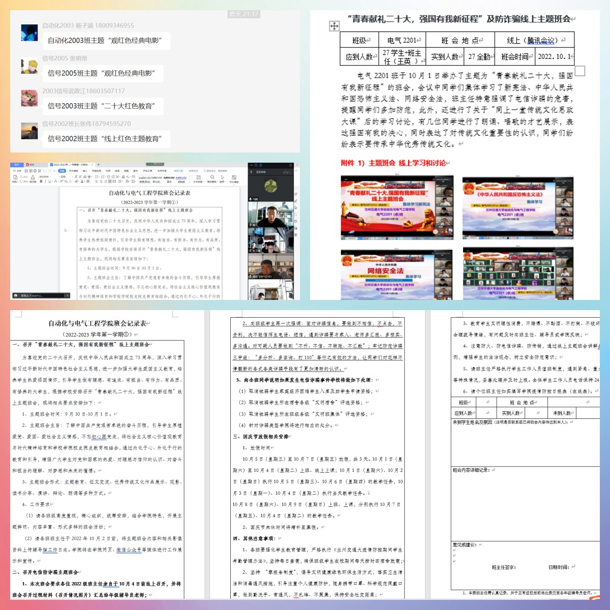 为喜迎党的二十大召开,庆祝中华人民共和国成立73周年,9月30日至10月1日,根据学校统一安排,全校578个自然班有序召开了“青春献礼二十大 强国有我新征程”线上主题班会,全体本专科生参加了此次主题班会。
