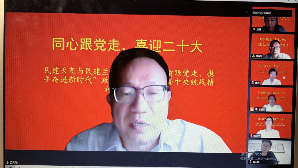 为迎接中国共产党二十大胜利召开,交流学习中共中央统战工作会议精神经验,落实狄生奎书记关于学习贯彻省委统战工作会议精神的六条要求,扎实推进“矢志不渝跟党走·携手奋进新时代”政治交接主题教育,积极探索打造政治坚定、参政有力、团结奋进的新时代高水平中国特色社会主义参政党基层组织,10月1日晚,民建兰州交大支部与民建天津商大委员会携手举办了中央统战工作会议精神学习经验交流会。