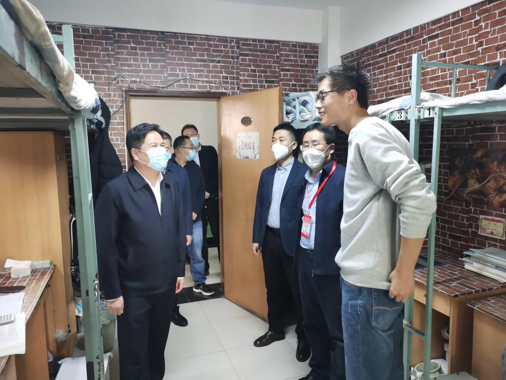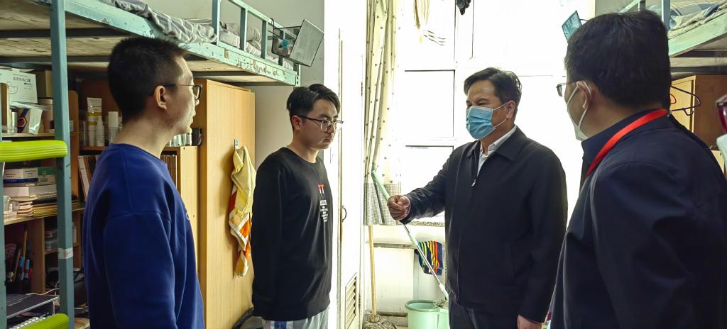 国庆假期,为进一步落实落细疫情防控工作相关要求,加强校园封闭管理期间学生教育管理工作,确保秋季学期各项工作平稳有序安全运行,10月7日中午,学校党委书记狄生奎、副校长党建武一行深入学生宿舍、食堂和超市等校园生活服务场所,实地督导检查学校防疫工作开展情况。