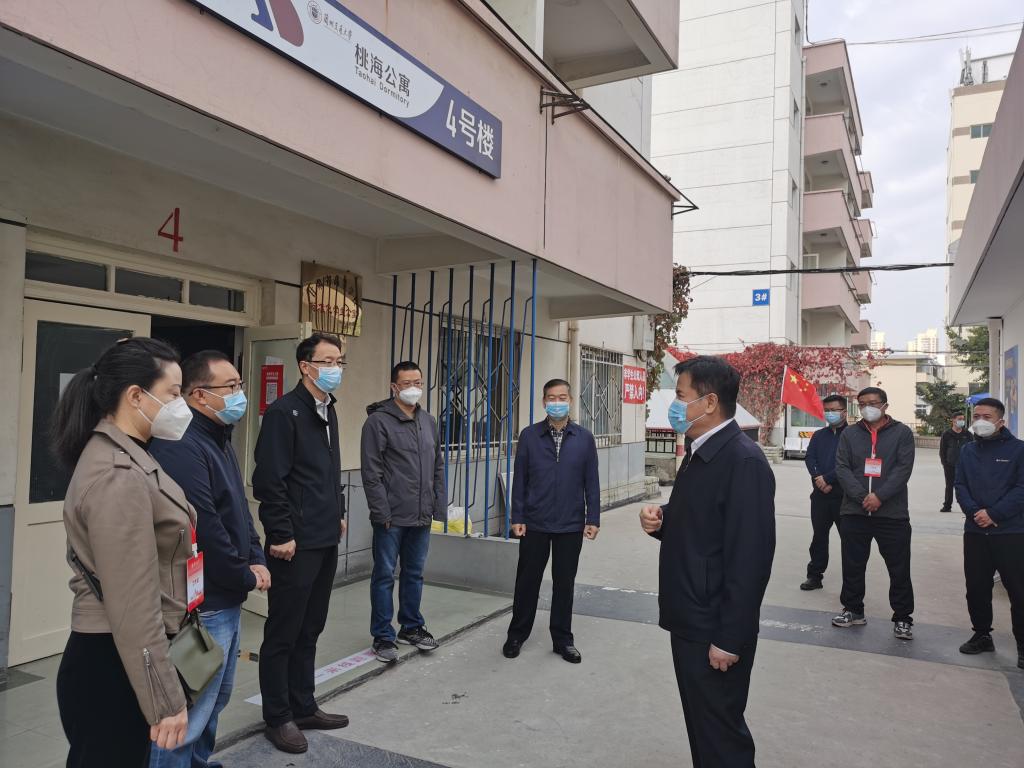 在桃海公寓,狄生奎现场听取了学生处、公寓管理中心负责人关于学生进出公寓人脸识别打卡、公寓分区域精细化管理工作落实情况。他强调,学生公寓既是学生日常生活、学习、交流的主要场所,也是课堂之外对大学生开展思政教育和素质教育的重要阵地,更是校园精神文明建设的窗口。相关职能部门和各学院要牢固树立“以学生为中心”的理念,加强公寓建设与管理工作,不断提升服务意识,创新工作方式,发挥好学生公寓育人作用。学生工作人员和公寓管理人员要像对待自己的孩子一样,关心关爱宿舍里的每一位学生,既要当学生的良师,也要做学生的益友。要经常性地进入宿舍,与学生开展面对面的交流,了解掌握学生在学习生活中的需求和存在的实际困难,帮助学生解决合理诉求,让学生真切感受到学校的温暖。