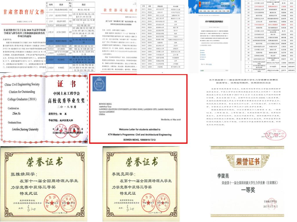 十年来,我们薪火相传,莘莘学子在这里成长。学院全面贯彻党的教育方针,以土木工程大类下的线、桥、隧、建分方向培养;土木工程基础上的铁道工程、道路桥梁与渡河工程专业特设交叉;土木工程依托下的工程管理和工程造价专业领域延伸;土木工程支撑下的水利水电工程和工程力学专业行业拓展,7个本科专业相互融合支撑,形成了独具特色的交通土建领域工程技术人才培养体系。土木工程、工程管理、铁道工程、道路桥梁与渡河工程4个专业获批国家一流本科专业建设点,水利水电工程、工程造价2个专业获批甘肃省一流本科专业建设点。工程管理专业获批甘肃省创新创业改革示范专业;土木工程、工程管理、水利水电工程3个专业高标准通过工程教育专业认证(评估和复评)。在全国学科评估中,土木工程学科位列全国20到30位,获批甘肃省优势学科建设点,目前正在参与实施学校“国家一流学科突破工程”。十年来,培养了近万名本科层次人才、3000余名硕士研究生、35名博士研究生,10名博士后出站。本科生一次考研录取率逐步稳定在18%左右,300余名本科生成功进入国内外高水平大学继续深造。40余名学生获全国大学生年度人物、“全国十佳未来水利之星”、全国土木工程专业优秀毕业生、全国工程管理专业优秀毕业生、茅以升铁道教育希望之星、“詹天佑优秀学生”、徐芝纶力学优秀学生等荣誉,百余人荣获省级三好学生和学生干部荣誉称号;获得省级优秀博士学位论文10余篇,省级优秀硕士学位论文40余篇。学生在全国大学生结构设计大赛、“全国大学生挑战杯”、“互联网+”等多项学科、创新创业竞赛中获奖千余项,学生获批申报发明和实用新型专利数百项。