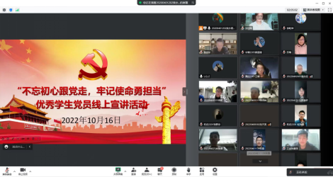 为充分发挥大学生“党员领航员”的先锋模范带头作用和榜样示范引领作用,10月16日,学院党委在遵守学校疫情防控相关规定的前提下,举办“不忘初心跟党走,牢记使命勇担当”优秀学生党员线上宣讲活动。甘肃省优秀毕业生刘启正、国家奖学金获得者李波帆、“科研达人”李屹坤以及第四届甘肃省青年志愿服务项目大赛金奖获得者陈世东等4名党员领航员,创新开展富有“党味、新味、趣味”的宣讲,为学院大一大二的学弟学妹们讲述了一堂生动的入党启蒙教育课。