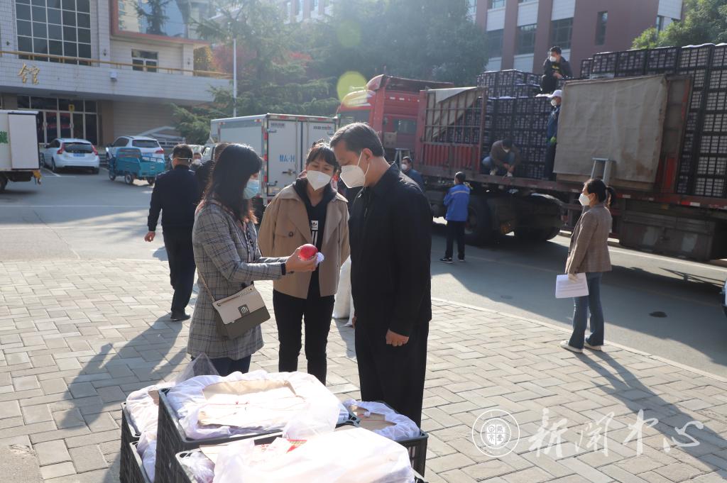 “校内的工作人员很辛苦,学生又是国家的栋梁之才,我们想用苹果来表达心意,愿大家都平平安安……作为校属企业,公司的发展离不开学校的平台支撑和校领导的大力支持,回馈学校是我们应尽的责任和义务。”兰州交大工程咨询有限责任公司负责人一边指挥着工人们有序卸车,一边讲述到。