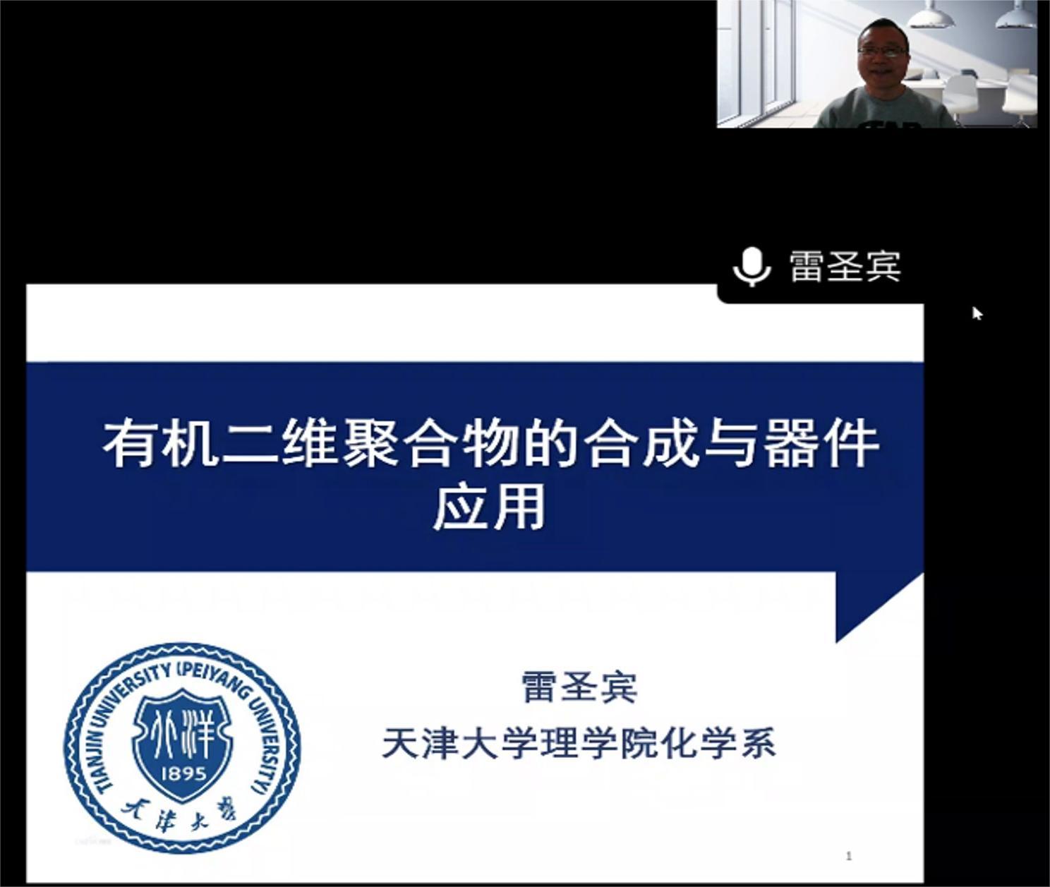 雷圣宾从二维聚合物的定义、界面反应合成及其器件应用三个方面对有机二维聚合物的研究进展做了详细的介绍。并分享了自己的科研求学经历。