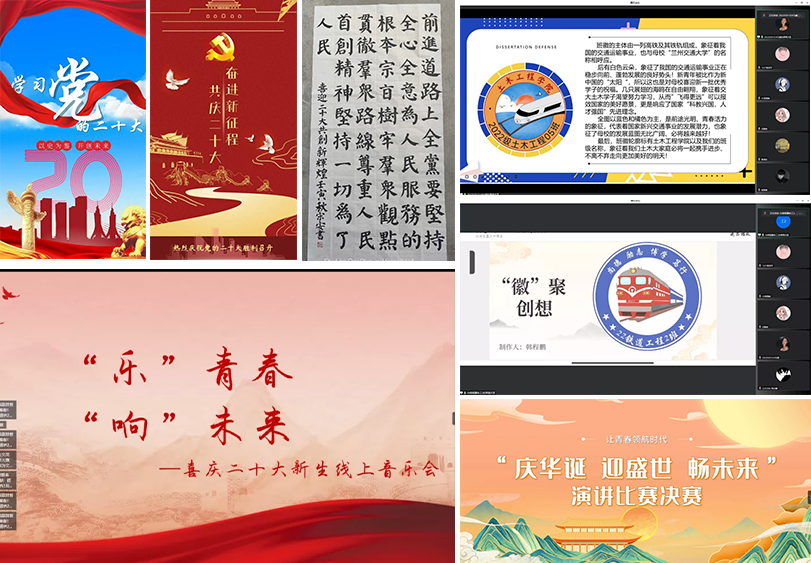 特色活动线上学,将二十大精神引入亮点活动。学院先后举办了“筑安全防线,创平安宿舍”寝室安全教育活动、“童年一课”线上支教志愿服务、凡尘安心志愿者培训、禁毒知识专题讲座、团学干部基本技能培训大会等多项特色活动,进一步丰富了土木学子课余文化生活,涵养和谐文明的学院风气,促进正确价值观养成,更加坚定了青年学子为中华民族伟大复兴添砖加瓦的决心。