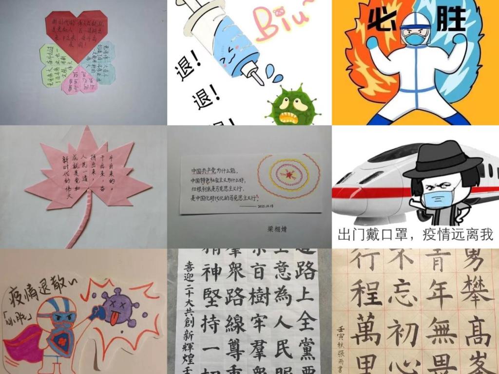多彩校园文艺创作,点燃激扬发散思维。学院紧跟主题稳扎稳打,充分挖掘活动体裁,创新第二课堂形式,举办了“庆华诞、迎盛世、畅未来”演讲比赛、班徽设计大赛、“乐青春,享未来”新生线上音乐会、“奋进新时代,共绘同心圆”文创作品征集活动、“温暖记心中,纸短相思长”信件作品征集活动、“疫情不‘抑情’,青春勇担当”抗疫表情包设计活动、“礼赞新时代,云端展风采”线上文艺展示活动、“献礼二十大,青春心向党”心得感悟视频录制活动、自制书签手抄“二十大”金句等十余项文化艺术活动,号召激励青年学子锐意进取、勇攀高峰,用实际行动向祖国表白。
