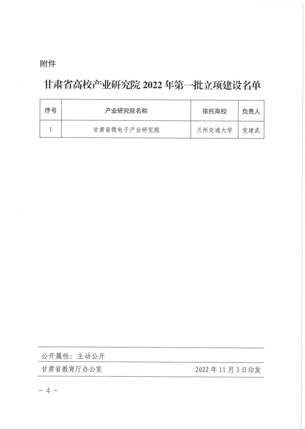 近日,甘肃省教育厅、甘肃省科技厅、甘肃省工业和信息化厅和甘肃省人民政府国有资产监督管理委员会联合发文,公布2022年第一批高校产业研究院名单。我校申报的“甘肃省微电子产业研究院”获批组建,成为首批立项的12所高校之一。