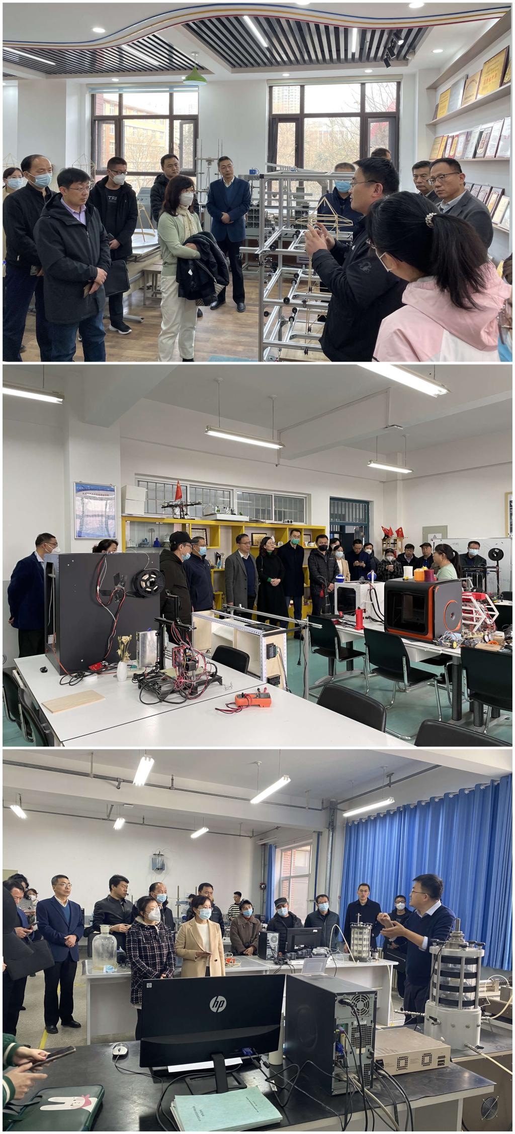 活动中,统战成员和统战干部依次参观了机器人训练、艺术设计、3D打印、嵌入式设计、结构设计、人工智能实践育人基地、轨道交通信息与控制国家级虚拟仿真实验教学中心、分析测试中心、道路工程灾害防治技术国家地方联合工程试验室、交通工程省级实验教学示范中心、电工电子国家级实验教学示范中心。参观过程中,实验管理中心负责人、各实验室、工程中心负责教师为大家详细介绍了实验室的现有设备、研究方向、发展前景、取得的成绩、面临的挑战和困难等内容,具体演示了实验设备的操作流程。大家一致认为,近年来,我校在实验技术队伍培养、实验平台体系建设、实验教学与改革等方面均取得了丰硕的成果,为提高实验教学和人才培养质量提供了有力的支撑,为学校的教学科研工作提供了有力的条件保障。