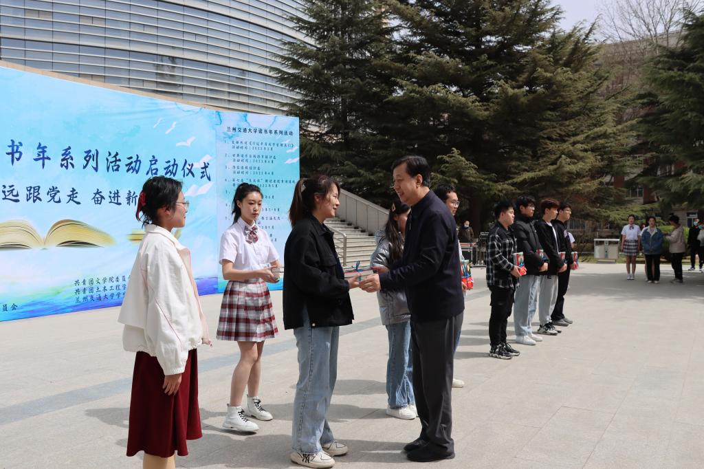 为全面贯彻习近平新时代中国特色社会主义思想,落实党的二十大报告中提出的“建设全民终身学习的学习型社会、学习型大国”“深化全民阅读活动”的要求,培育和践行社会主义核心价值观,建立全校阅读推广服务的长效机制,学校启动了2023年兰州交通大学读书年系列活动。3月23日中午,兰州交通大学“学习二十大、永远跟党走、奋进新征程”读书年系列活动启动仪式在图书馆前广场举行,校党委常委、副校长马军党出席并宣布读书年启动,校团委全体老师、各学院(部)团委书记及2022级新生团支部团员代表200余人参加了启动仪式。
