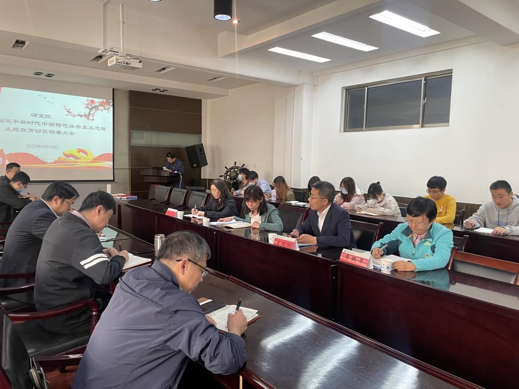 会议传达了学习贯彻习近平新时代中国特色社会主义思想主题教育工作会议精神、全省学习贯彻习近平新时代中国特色社会主义思想主题教育动员部署会议精神和学校学习贯彻习近平新时代中国特色社会主义思想主题教育动员部署会议精神,就研究院开展主题教育活动进行部署。
