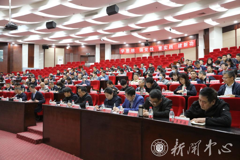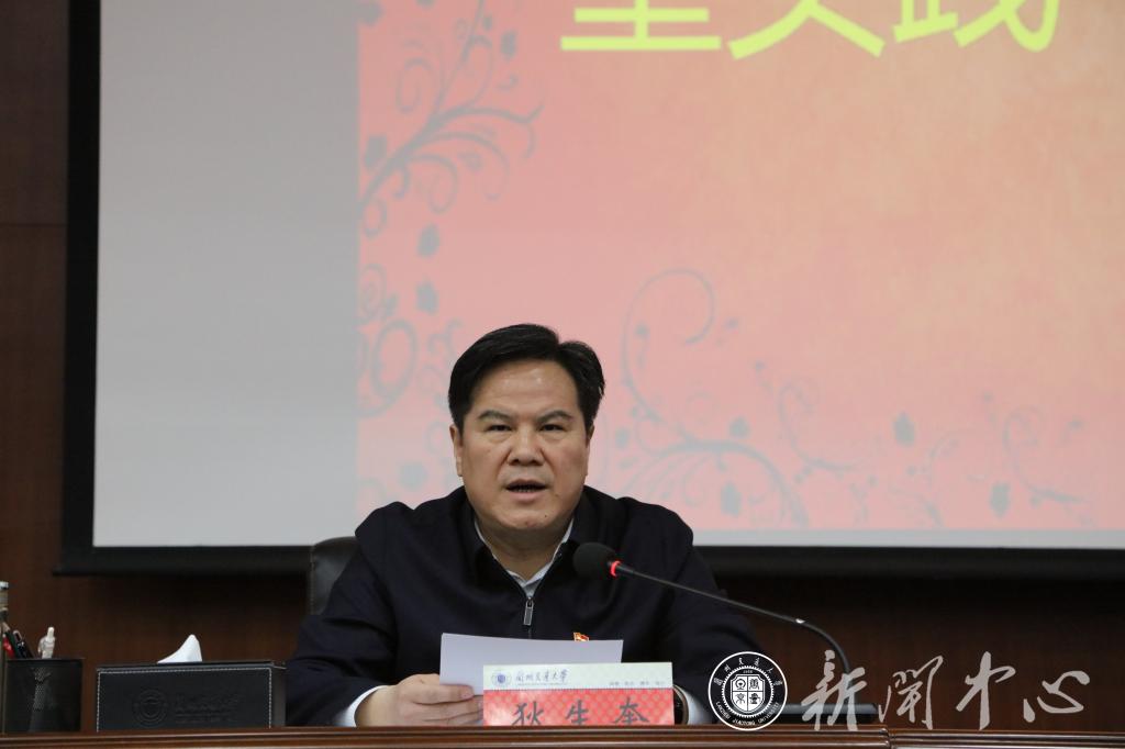 4月21日,兰州交通大学学习贯彻习近平新时代中国特色社会主义思想主题教育读书班开班式在尚德楼三楼大报告厅举行。甘肃省社科院副院长陈永胜教授应邀作专题辅导报告。全体在校校领导、党委常委、全校处级干部参加开班式。校党委书记狄生奎主持并讲话。