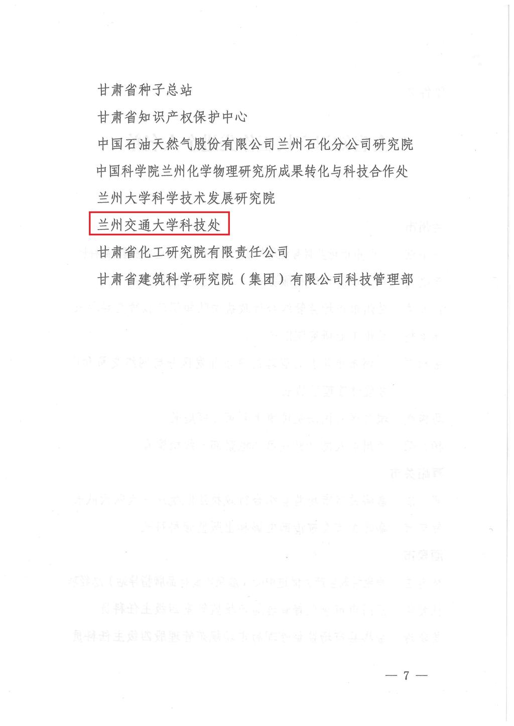 近日,甘肃省人力资源和社会保障厅、甘肃省市场监督管理局联合发布《关于表彰全省知识产权工作先进集体和先进个人的决定》,兰州交通大学科学技术处荣获“全省知识产权工作先进集体”称号。