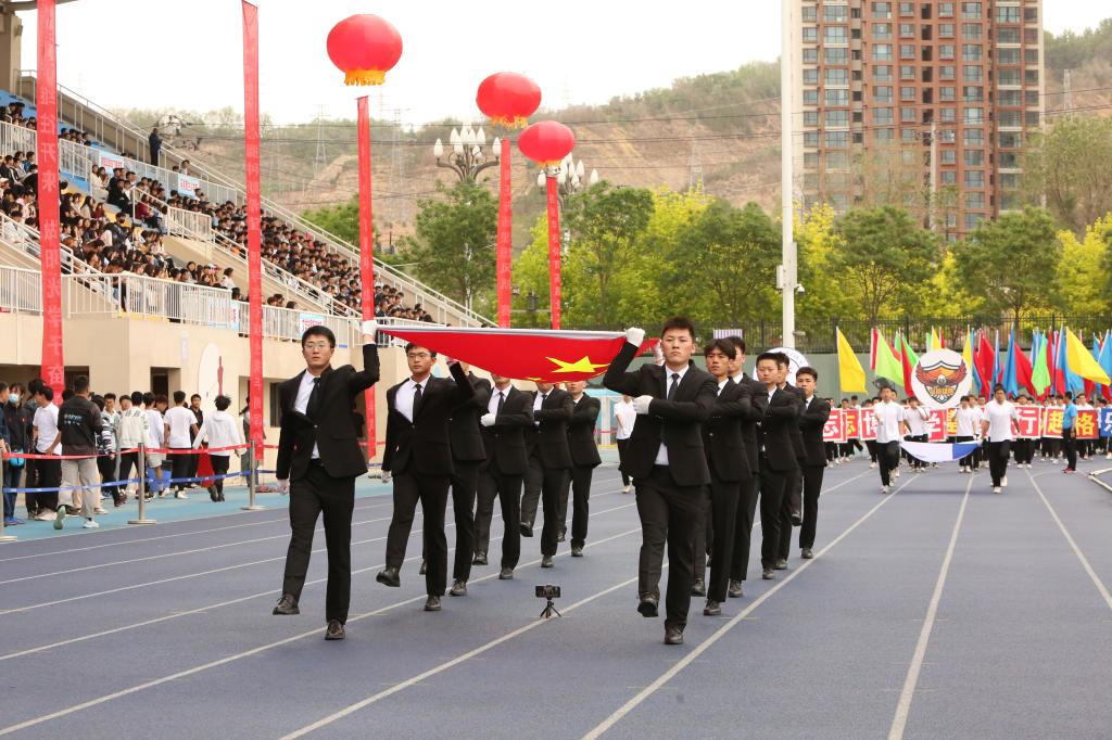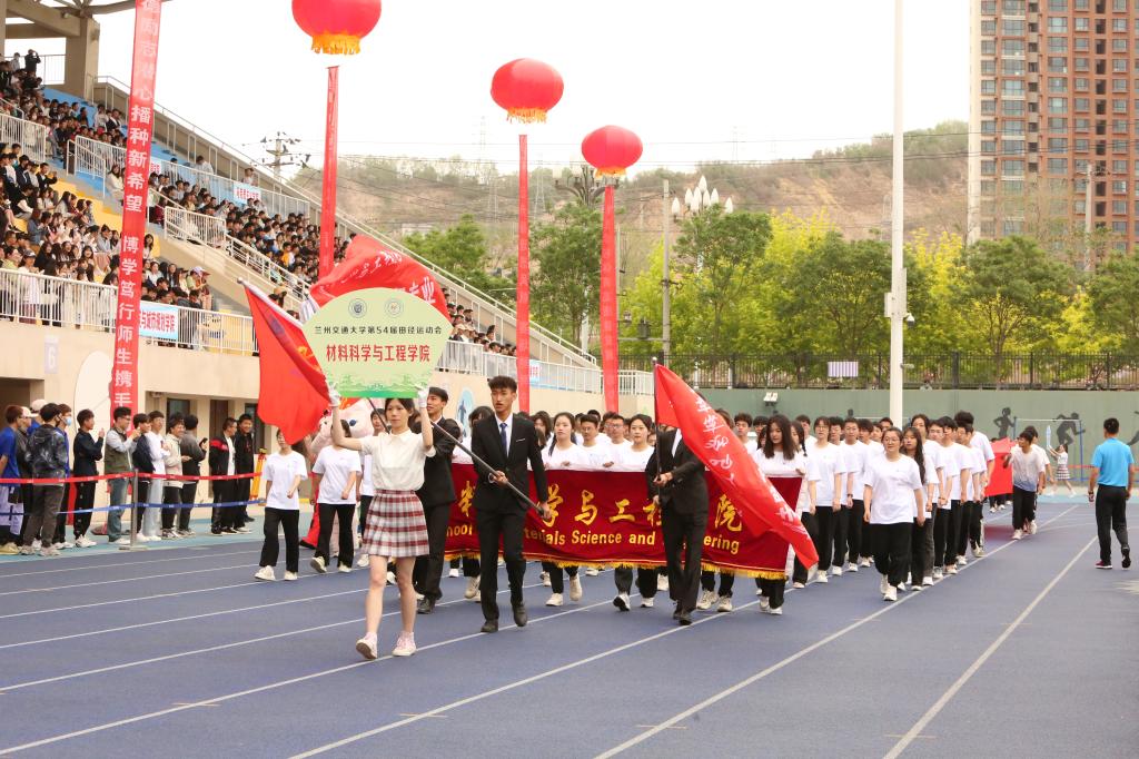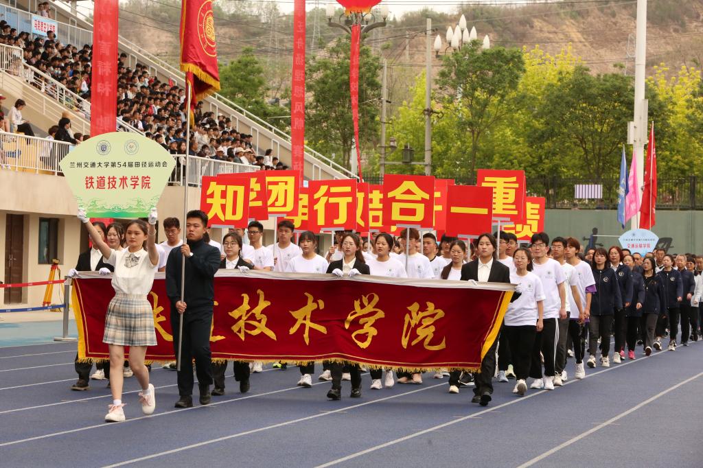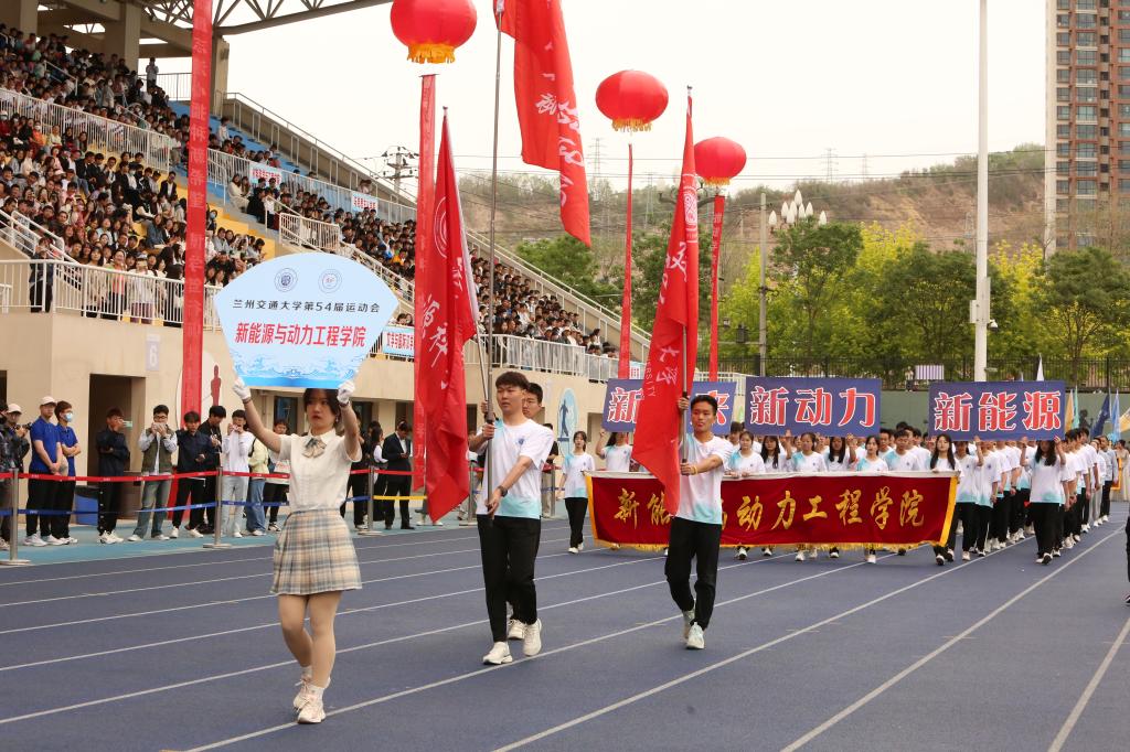 入场人员精神抖擞、步伐整齐、口号嘹亮,赢得在场观众阵阵掌声与喝彩。各学院入场队伍结合自身专业特色,创意编排的方阵风采展示,为入场环节带来了精彩的瞬间。青春洋溢的笑脸、迎风飞舞的彩旗、鲜艳夺目的花束,彰显出兰州交大人自信豪迈、朝气蓬勃的精神面貌和奋发有为的青春风采。