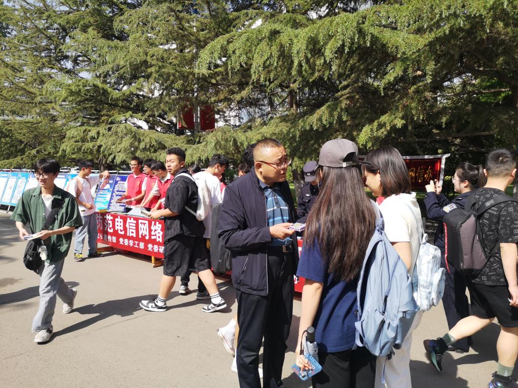 为深入推进学习贯彻习近平新时代中国特色社会主义思想主题教育,全面落实习近平总书记关于预防治理电信网络违法犯罪工作的重要指示精神,切实增强广大师生识诈防诈“免疫力”,不断加强校园反诈宣传教育成效,学校于“5·17”世界电信日前后在全校范围同步开展了为期一周的防范电信网络诈骗集中宣传教育活动。
