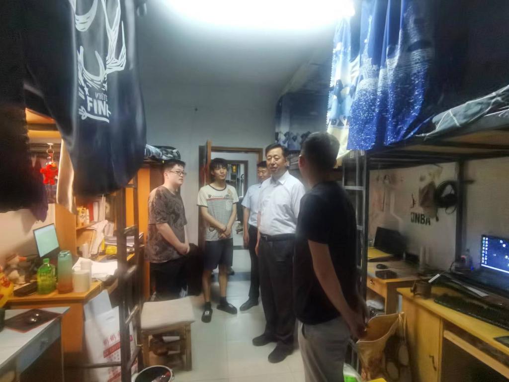 为扎实推进学习贯彻习近平新时代中国特色社会主义思想主题教育,深入开展领导干部“七进”工作,进一步加强师生之间的紧密联系,关心关爱学生学习生活,及时掌握学生思想动态,6月13日,副校长马军党深入学生一线,与学生共话成长,看望慰问值班值守的学生工作人员。