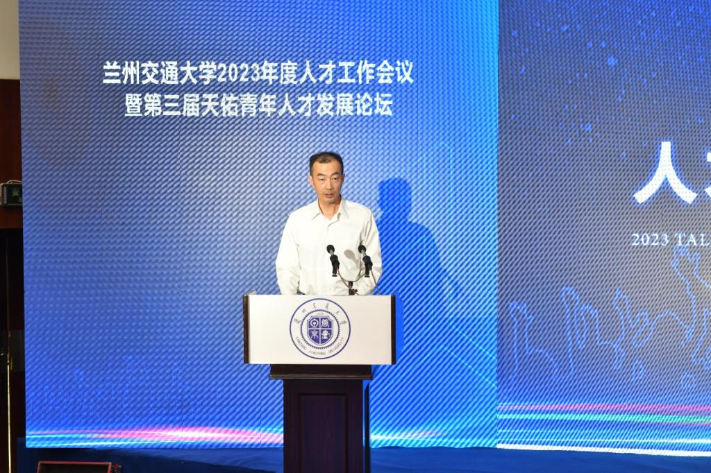 为深入贯彻落实党的二十大精神和习近平总书记关于做好新时代人才工作的重要思想,认真落实学校第十二次党代会精神,6月16日,兰州交通大学2023年度人才工作会议暨第三届天佑青年人才发展论坛在国际会展中心召开。省委组织部人才工作处处长金鑫,省人社厅专业技术人员管理处处长仵晓伟,校党委书记狄生奎,校长李引珍,党委副书记买寿清,副校长陈兴冲、党建武、苏程出席会议,副校长陈光武主持会议。