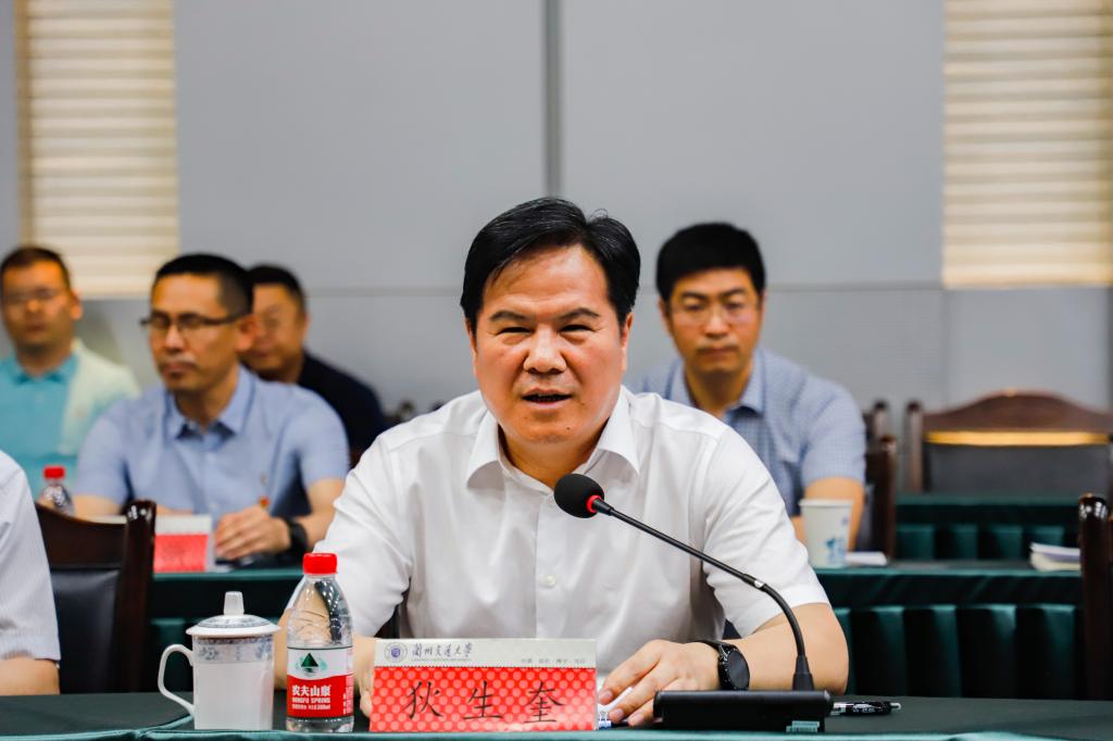 狄生奎对王海怀一行表示热烈的欢迎。狄生奎简要介绍了学校的历史沿革和发展情况。他表示,兰州交通大学积极践行“为西北乃至全国铁路建设发展培养专业人才”的初心与使命,为国家轨道交通事业和地方经济发展培养了20多万名优秀人才,他们大部分活跃在陆路交通各个领域,成为行业栋梁和业务骨干。学校积极发挥轨道交通行业特色优势,在青藏铁路建设中协同相关单位开展联合攻关,解决了高原冻土等世界性难题,目前正在积极参与川藏铁路等国家重大工程项目建设。学校立足西部、辐射全国,高度重视以“交通运输工程”为核心的学科建设,提出了力争交通运输工程学科在国家一流学科建设中获得“新突破”;实现师资队伍水平、人才培养能力、科技创新和社会服务能力、综合办学条件、国际化办学水平“五个新提升”;建成国家轨道交通行业技术创新人才培养高地和西部地区高速铁路服役安全与智能运维研发创新高地“两个新高地”的“1+5+2”的奋斗目标。狄生奎充分肯定了中交集团在服务国家交通强国建设和“两新一重”基础设施建设中取得的显著成就。他表示,中交集团坚持“以交通为业、以交通强国”,不断提升科技创新引领力,勇当“国家队”和“主力军”,修建中国路、中国桥、中国港、中国岛、中国城、中国装备,用一个个让世界惊艳的项目,重新定义了中国企业在基础设施建设领域的领跑者角色,是业界对标学习的标杆。他强调,中交集团作为学校重要的合作伙伴,双方在人才培养、学生就业、科研服务等方面建立了良好的合作关系。在今年4月赴北京与中交集团交流座谈过程中,双方就更进一步推动合作交流达成了一致意见。这次中国交建王海怀总经理一行来学校对接合作,充分体现了中交集团对科技、教育、人才一体化工作的高度重视,也是双方更好地深化交流合作的良好契机和全力推动。狄生奎对此次校企合作表达了良好祝愿,他表示,兰州交通大学将进一步积极深入地与中交集团开展交流合作,扎实落实人才培养、科技攻关、平台建设、成果转化等领域的合作内容,共同抓住技术革命的新机遇,共建校企创新联合体,为服务国家战略、服务行业发展做出新的贡献。